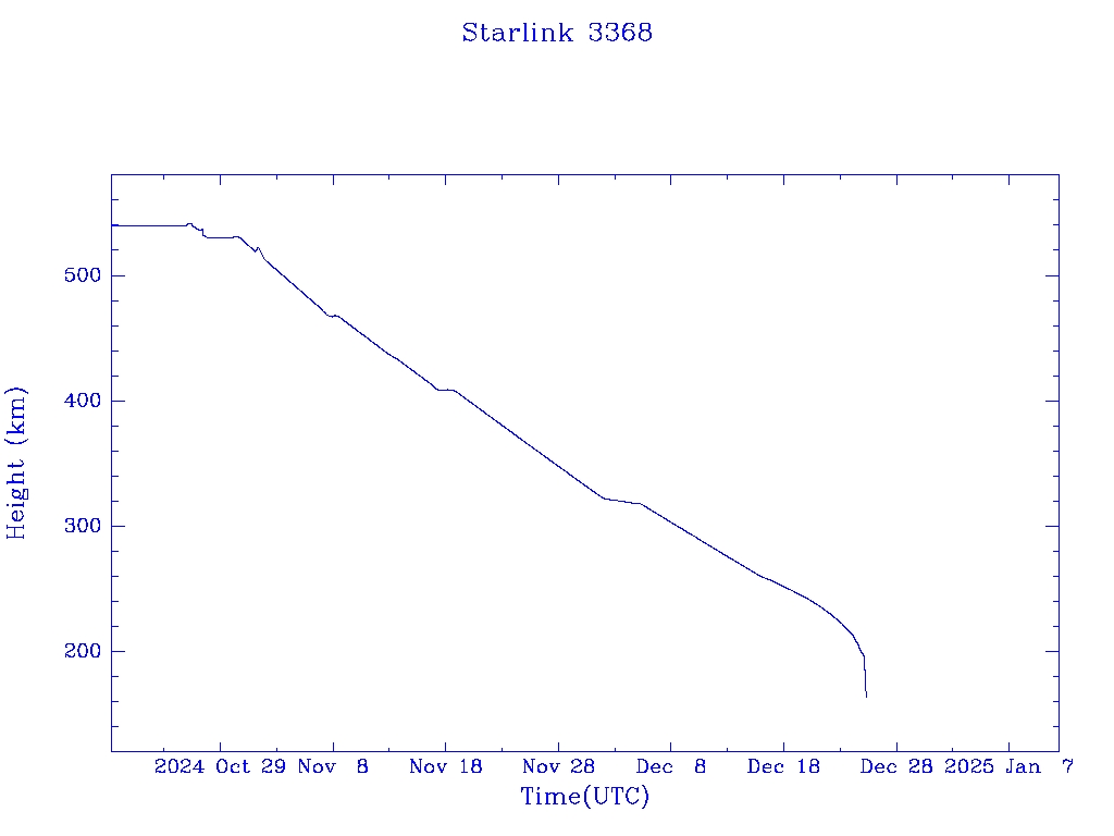 | Starlink 3368 | S51107 | R | 2022 Jan 19 | 2024 Dec 23? | 2024 Dec 25 |  |  |  |
