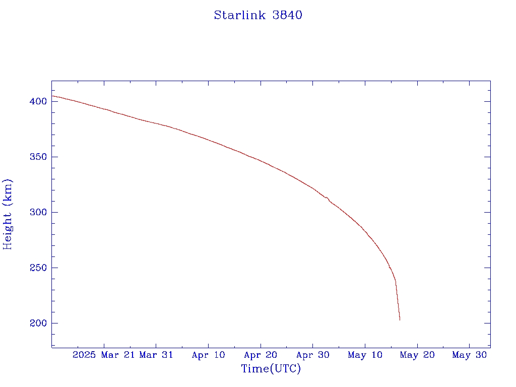 | Starlink 3840 | S52466 | M | 2022 May 6 | 2024 Jul 3? | 2025 May 17 |  |  |  |