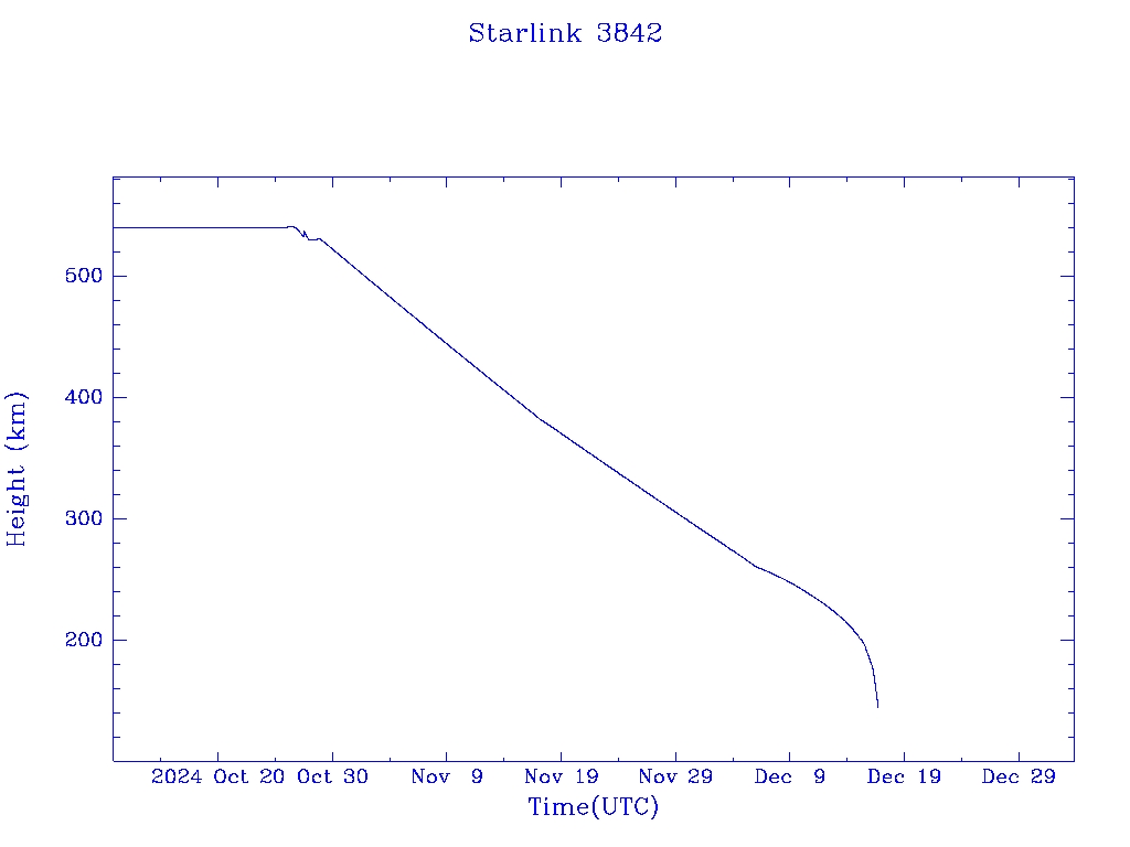| Starlink 3842 | S52481 | R | 2022 May 6 | 2024 Dec 7 | 2024 Dec 16 |  |  |  |