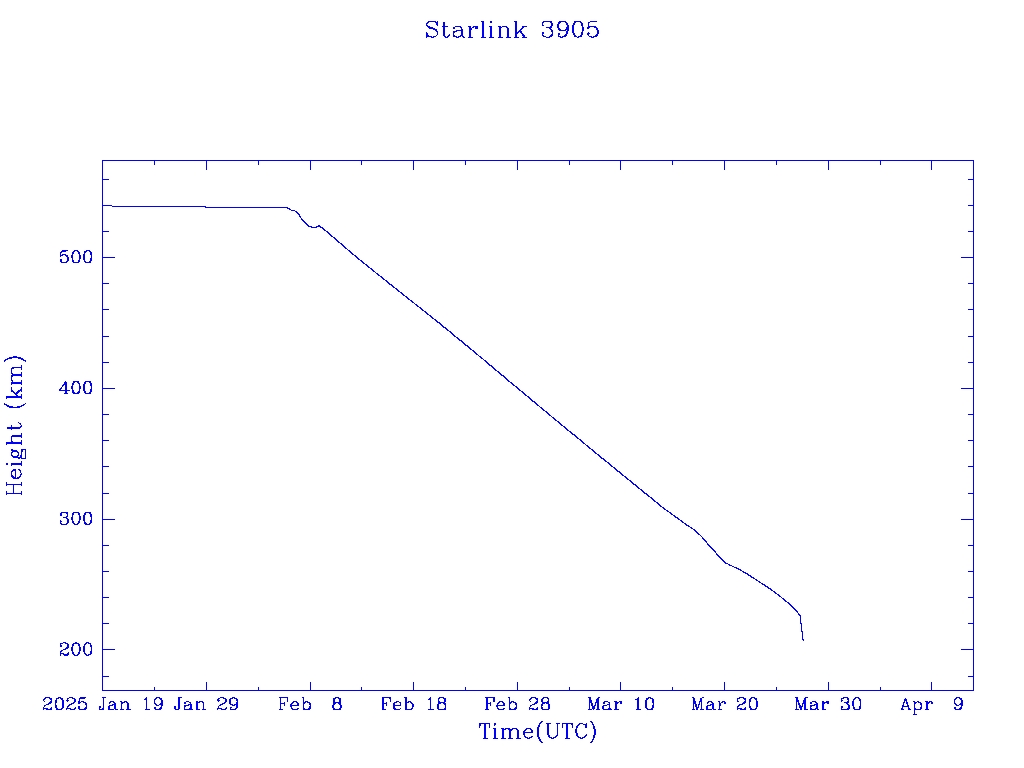 | Starlink 3905 | S52495 | R | 2022 May 6 | 2025 Mar 27? | 2025 Mar 27? |  |  |  |