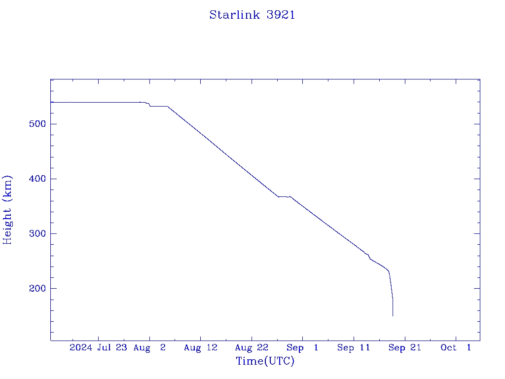 | Starlink 3921 | S52613 | R | 2022 May 14 | 2024 Sep 17? | 2024 Sep 18 |  |  |  |