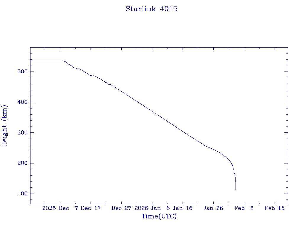| Starlink 4015 | S52616 | R | 2022 May 14 | 2026 Jan 20? | 2026 Feb 2 |  |  |  |