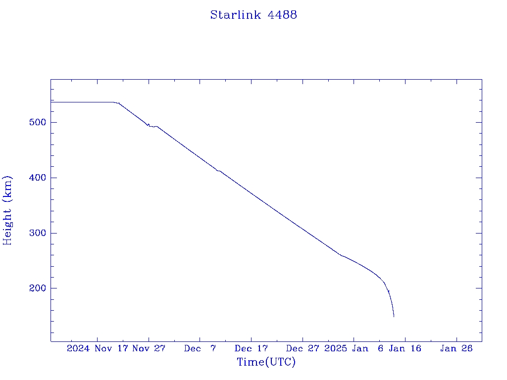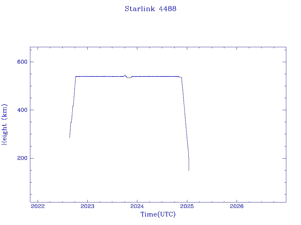 | Starlink 4488 | S53534 | R | 2022 Aug 19 | 2025 Jan 4? | 2025 Jan 13 |  |  |  |