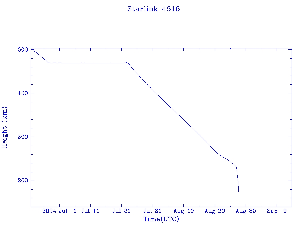 | Starlink 4516 | S53549 | R | 2022 Aug 19 | 2024 Aug 26? | 2024 Aug 27 |  |  |  |