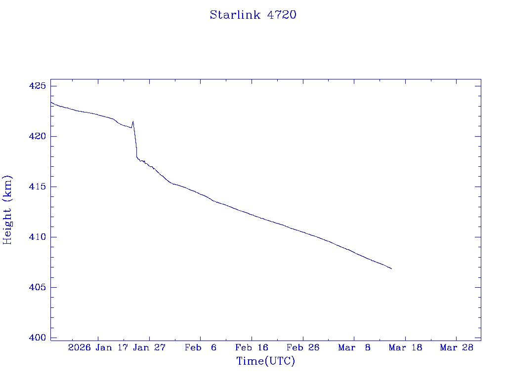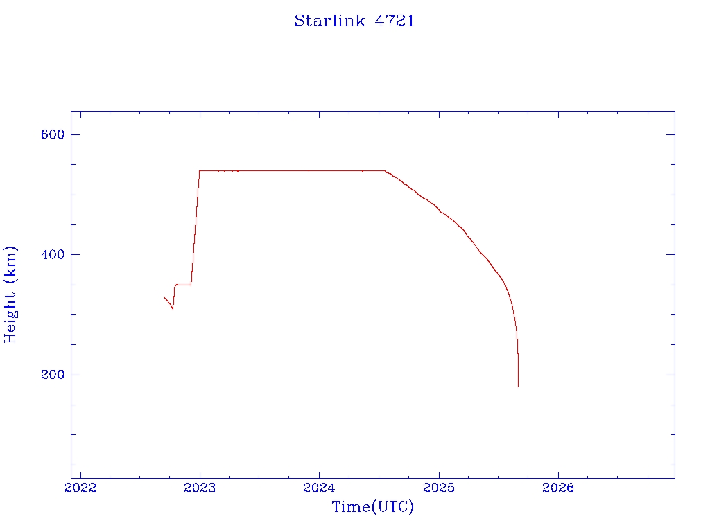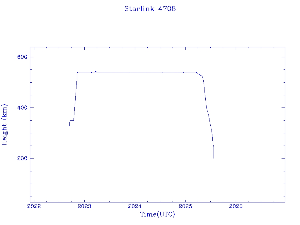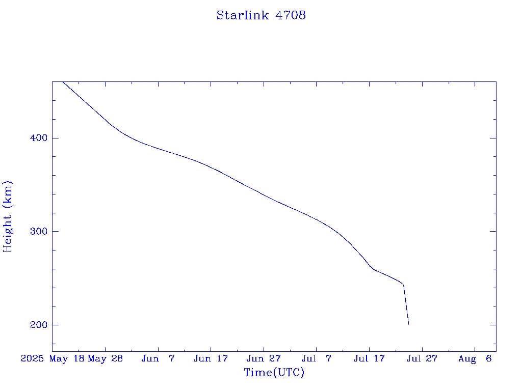 | Starlink 4708 | S53776 | R | 2022 Sep 11 | 2025 Jul 23? | 2025 Jul 24 |  |  |  |