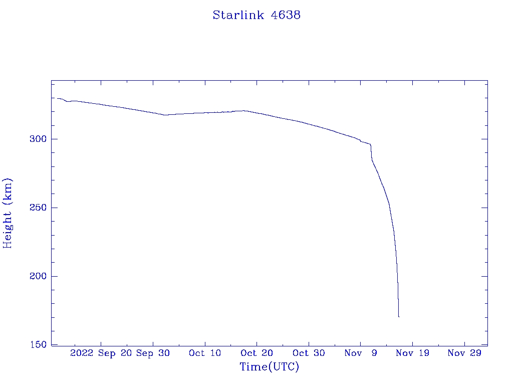 | Starlink 4638 | S53785 | F | 2022 Sep 11 | 2022 Nov 11 | 2022 Nov 16 |  |  |  |