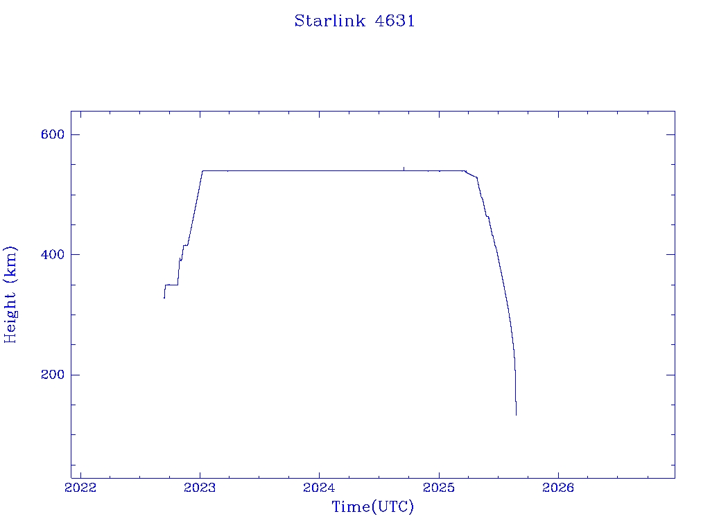 | Starlink 4631 | S53786 | R | 2022 Sep 11 | 2025 Jun 23? | 2025 Aug 23 |  |  |  |