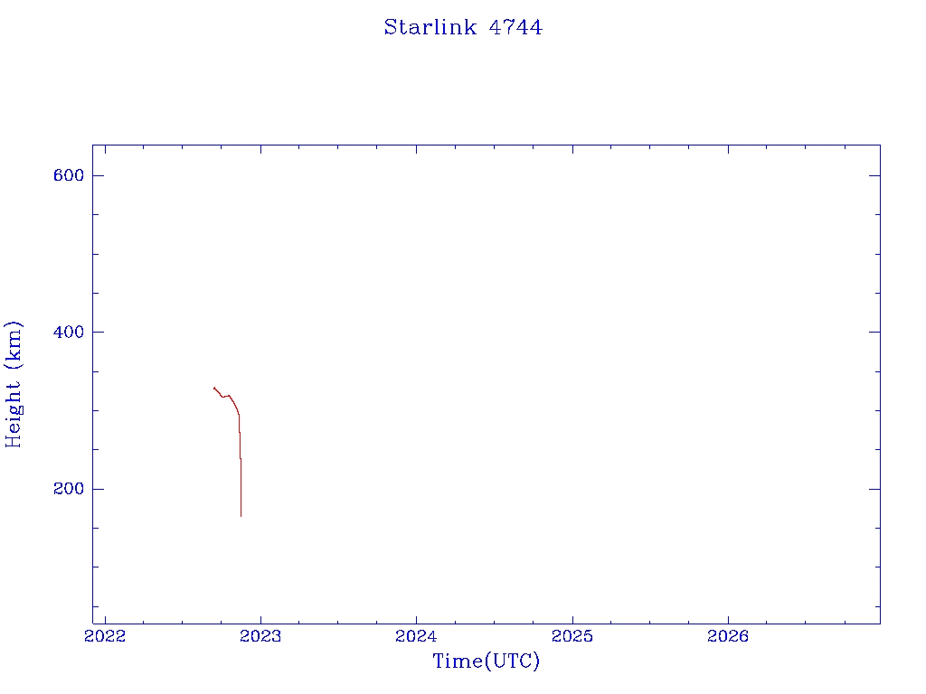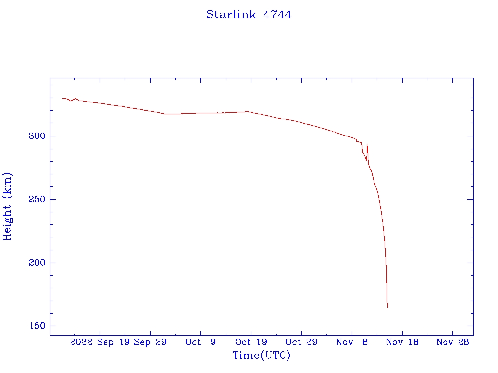 | Starlink 4744 | S53788 | F | 2022 Sep 11 | 2022 Nov 9? | 2022 Nov 15 |  |  |  |