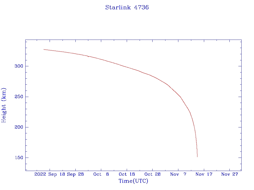 | Starlink 4736 | S53791 | F | 2022 Sep 11 | 2022 Sep 11 | 2022 Nov 14 |  |  |  |