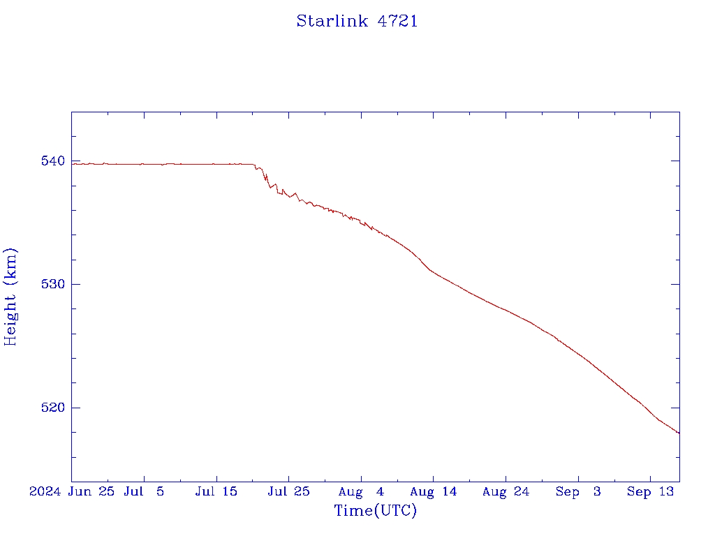 | Starlink 4721 | S53796 | M | 2022 Sep 11 | 2024 Jul 18? | 2024 Aug 31 |  |  |  |