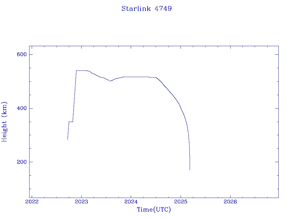 | Starlink 4749 | S53818 | R | 2022 Sep 19 | 2024 Jul 6? | 2025 Mar 8 |  |  |  |