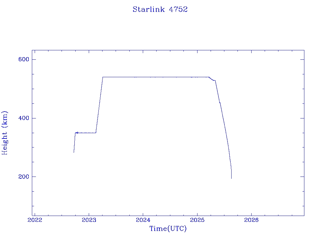 | Starlink 4752 | S53821 | R | 2022 Sep 19 | 2025 Jun 3? | 2025 Aug 18 |  |  |  |