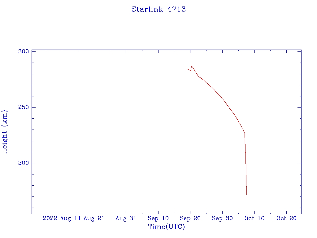 | Starlink 4713 | S53822 | F | 2022 Sep 19 | 2022 Oct 6 | 2022 Oct 7 |  |  |  |