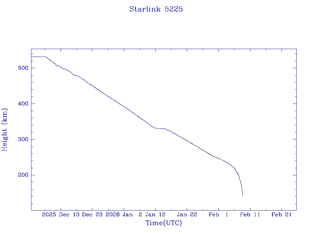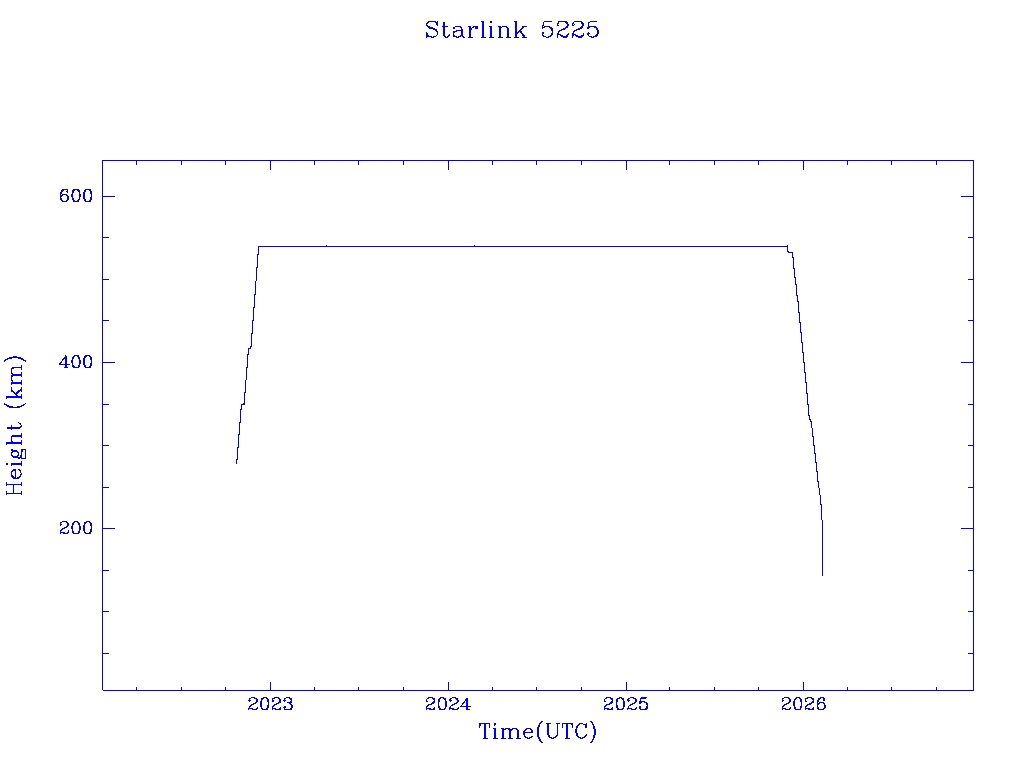 | Starlink 5225 | S54063 | R | 2022 Oct 20 | 2026 Jan 30? | 2026 Feb 8 |  |  |  |
