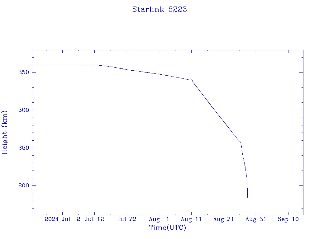| Starlink 5223 | S54069 | R | 2022 Oct 20 | 2024 Aug 26? | 2024 Aug 28 |  |  |  |