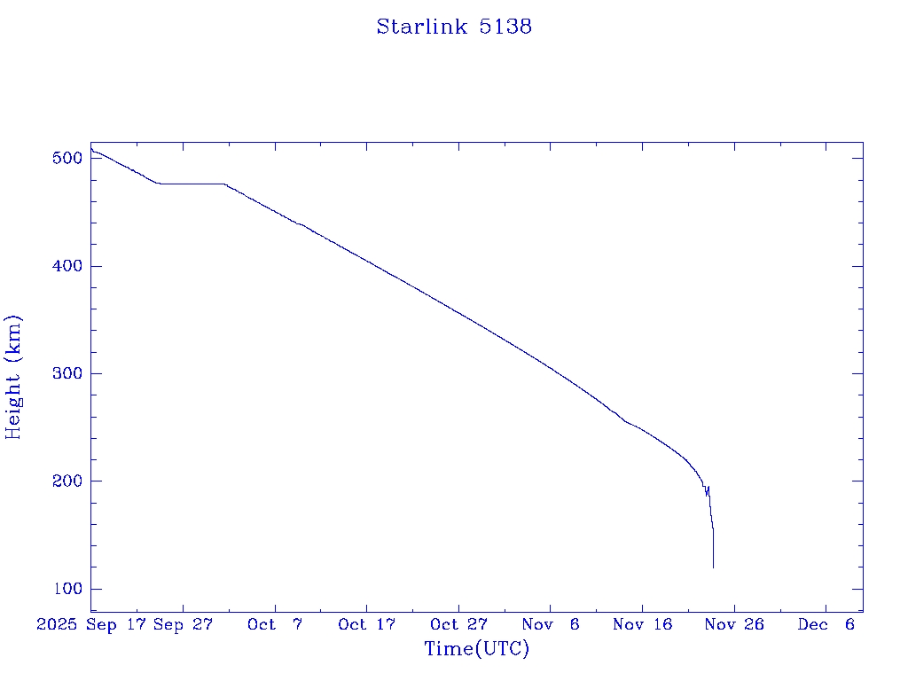 | Starlink 5138 | S54078 | R | 2022 Oct 20 | 2025 Nov 13? | 2025 Nov 23 |  |  |  |
