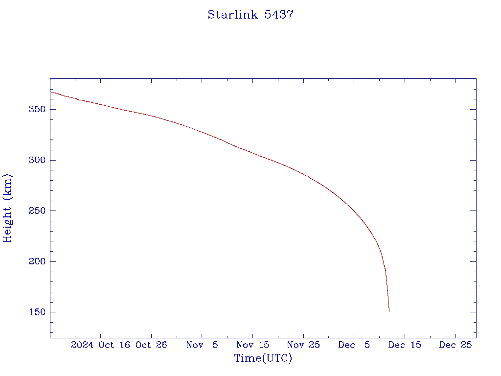 | Starlink 5437 | S54782 | M | 2022 Dec 17 | 2023 May 17? | 2024 Dec 12 |  |  |  |