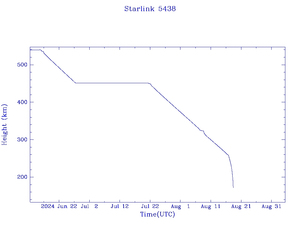 | Starlink 5438 | S54786 | R | 2022 Dec 17 | 2024 Aug 16 | 2024 Aug 18 |  |  |  |