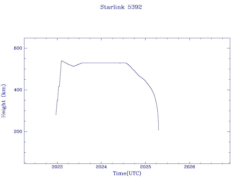 | Starlink 5392 | S54794 | R | 2022 Dec 17 | 2024 Nov 14? | 2025 Apr 18 |  |  |  |
