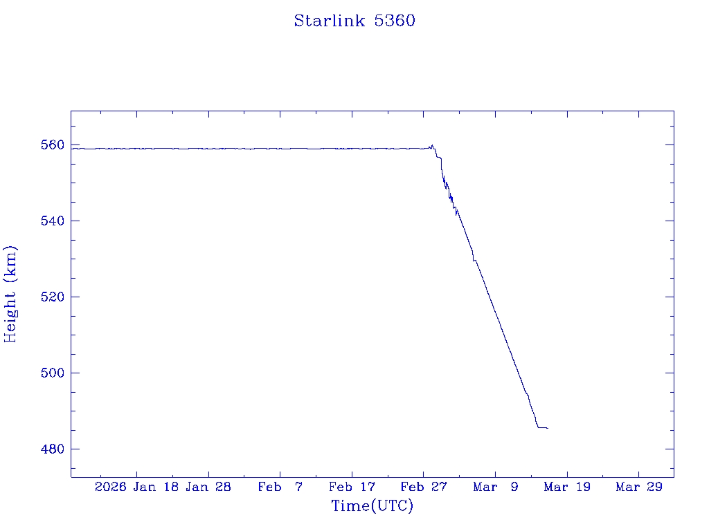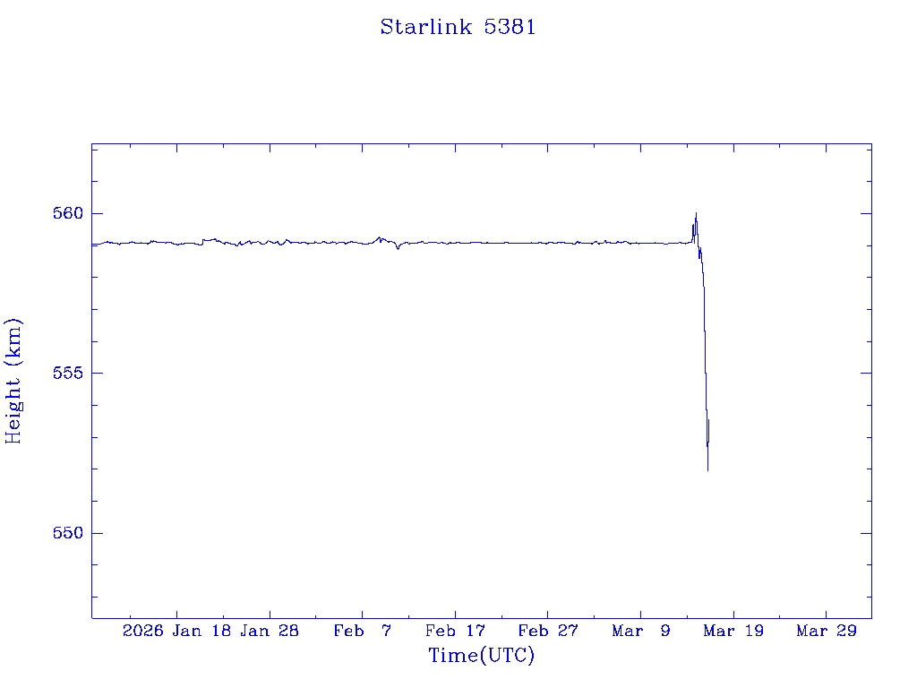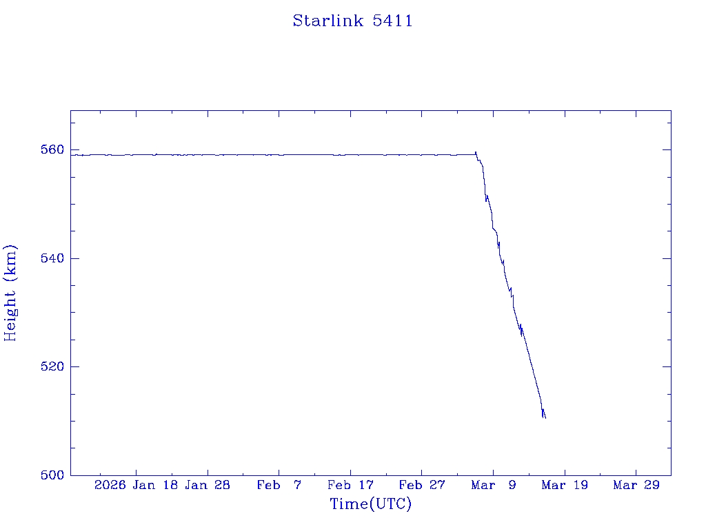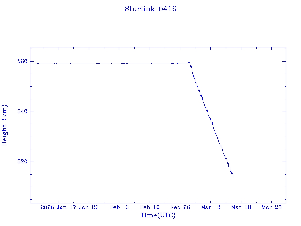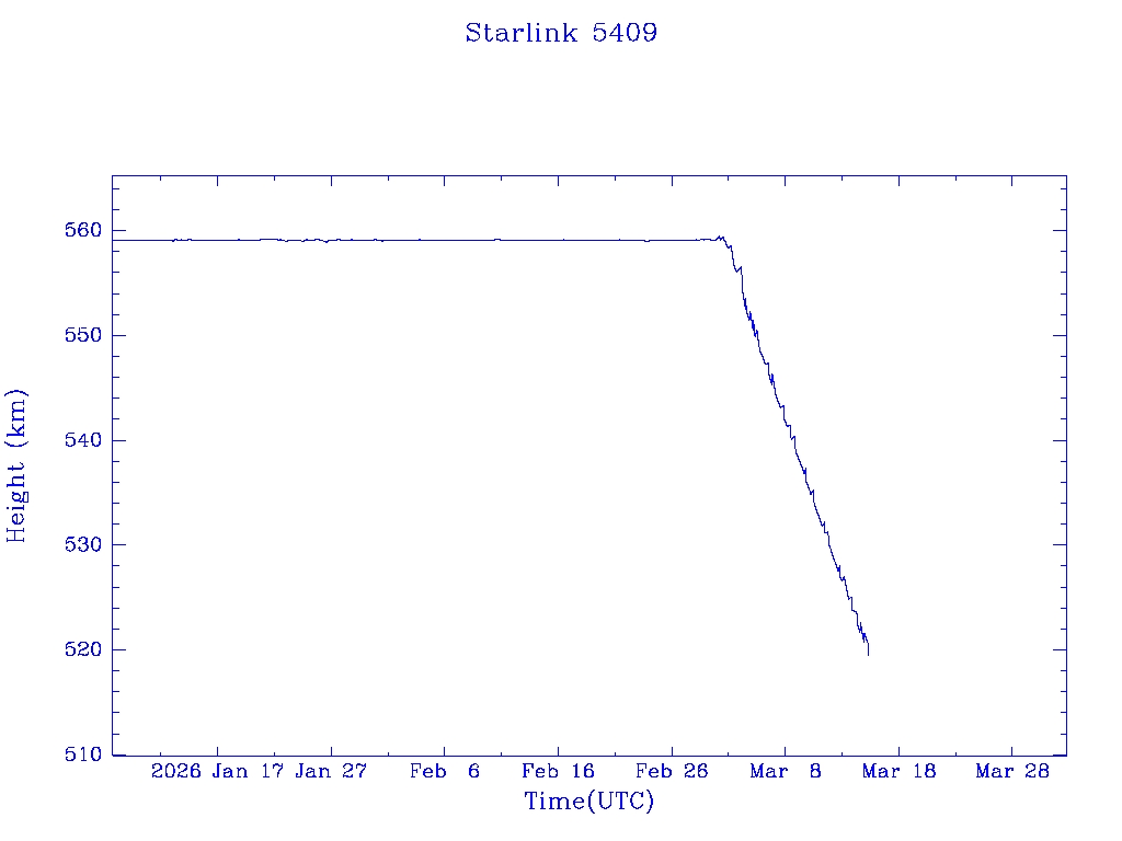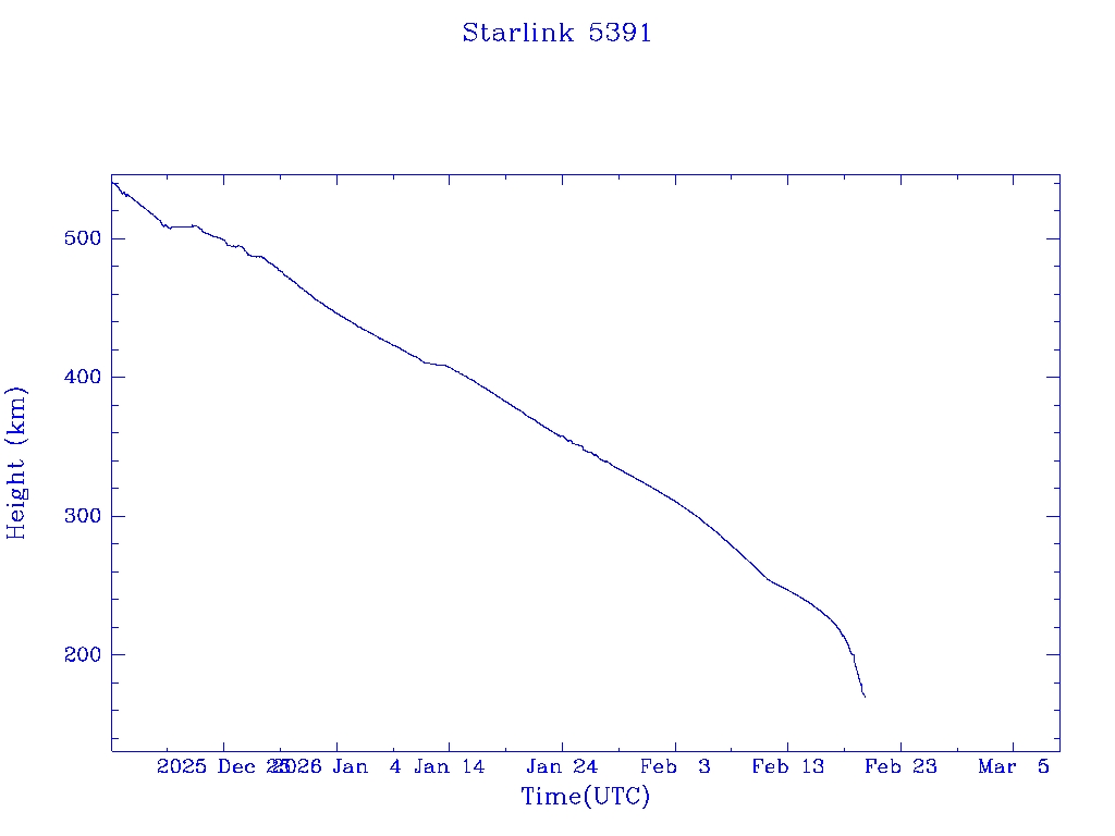 | Starlink 5391 | S54833 | R | 2022 Dec 28 | 2026 Feb 9? | 2026 Feb 20 |  |  |  |