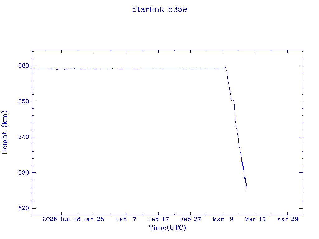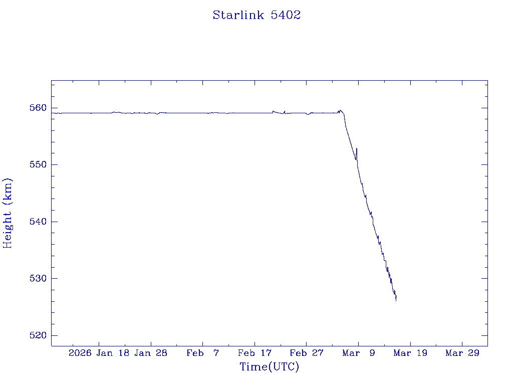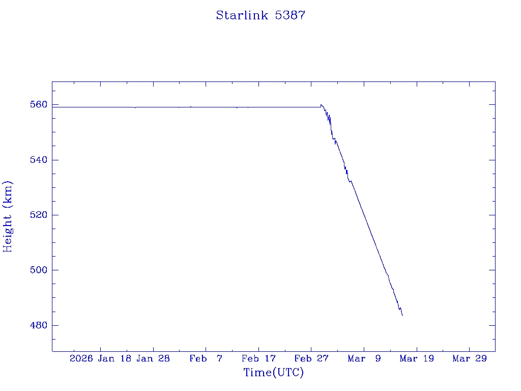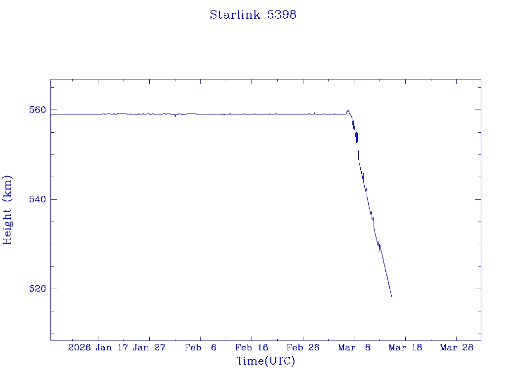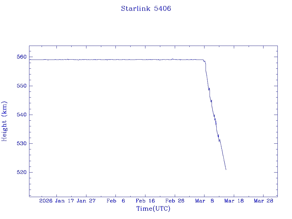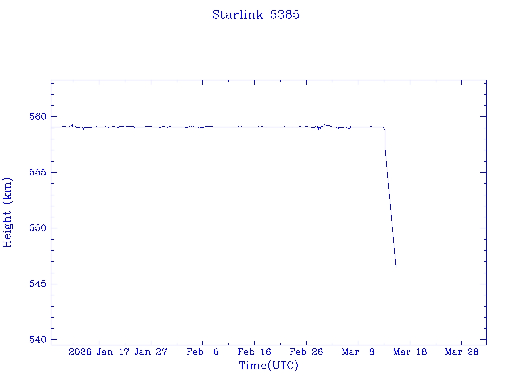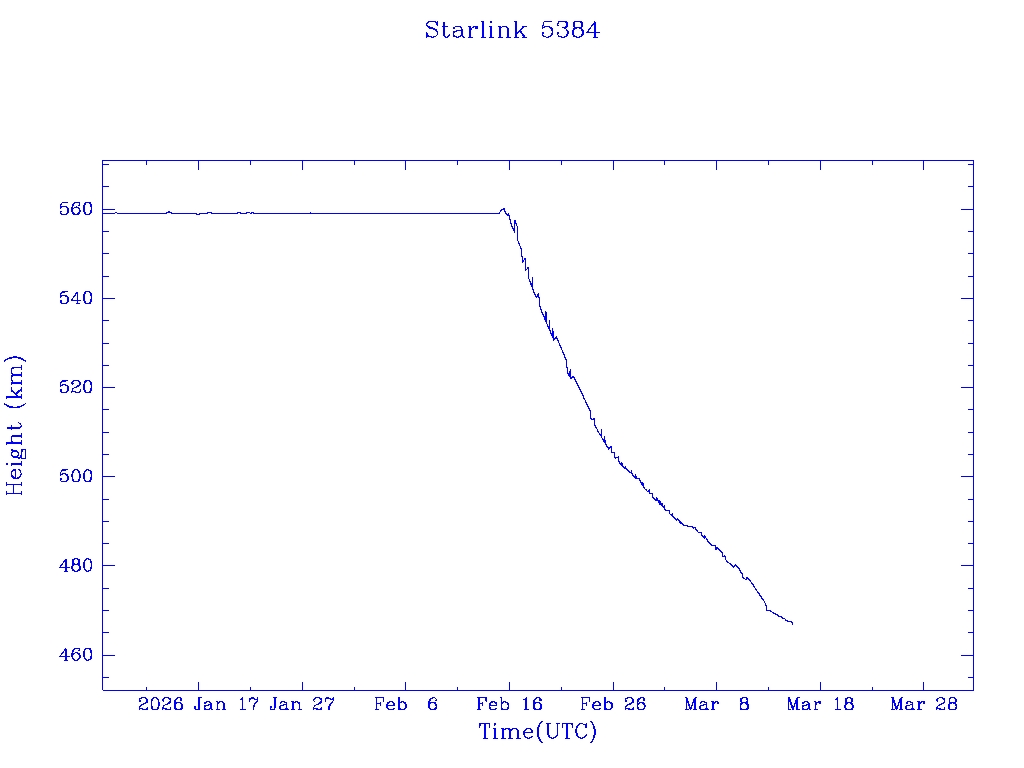| Starlink 5391 | S54833 | R | 2022 Dec 28 | 2026 Feb 9? | 2026 Feb 20 |  |  |  |