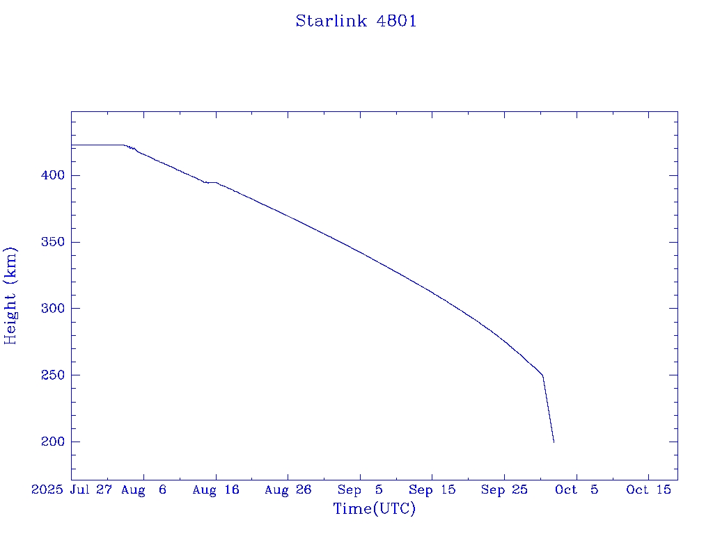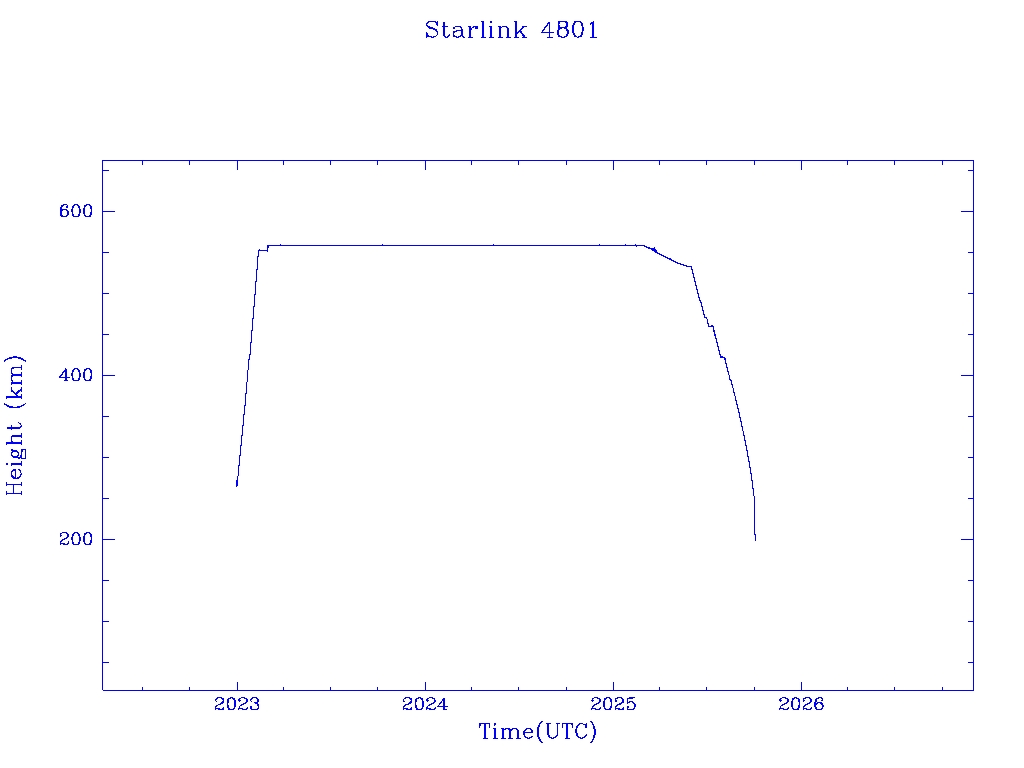 | Starlink 4801 | S54825 | R | 2022 Dec 28 | 2025 Sep 30? | 2025 Oct 2 |  |  |  |