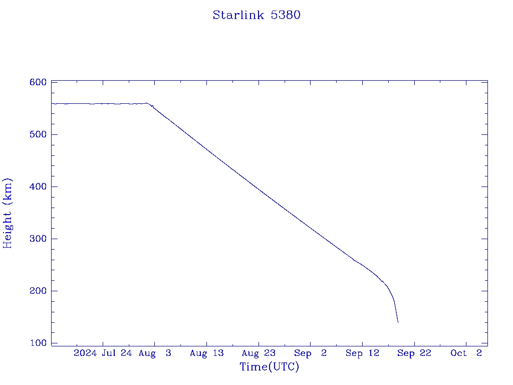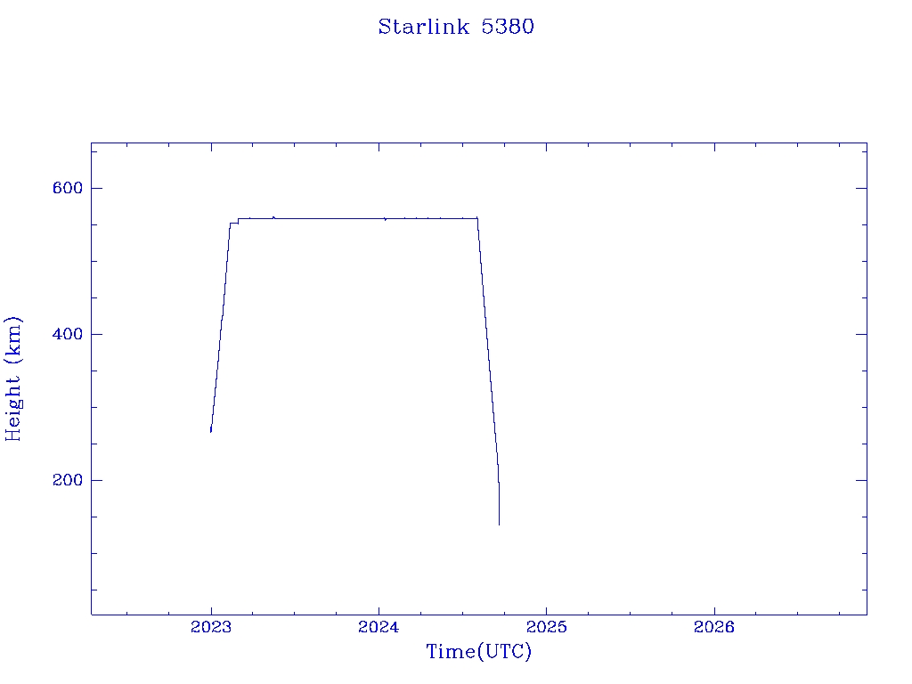| Starlink 5380 | S54829 | R | 2022 Dec 28 | 2024 Aug 2? | 2024 Sep 19 |  |  |  |