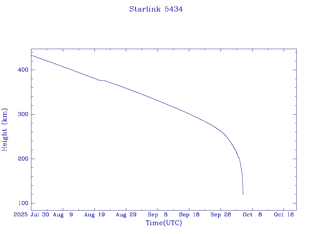 | Starlink 5434 | S54849 | R | 2022 Dec 28 | 2025 Aug 21? | 2025 Oct 5 |  |  |  |