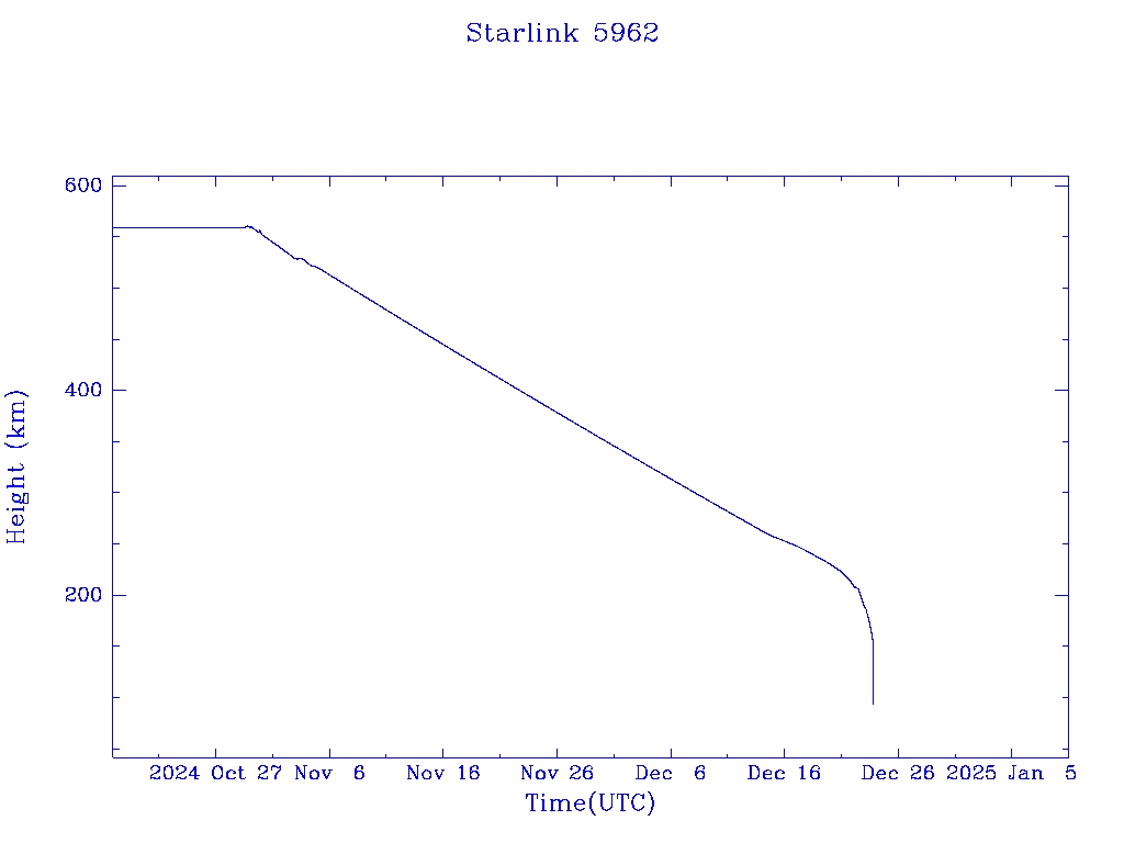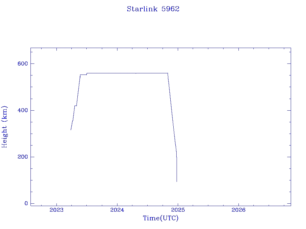 | Starlink 5962 | S55992 | R | 2023 Mar 24 | 2024 Dec 15? | 2024 Dec 23 |  |  |  |