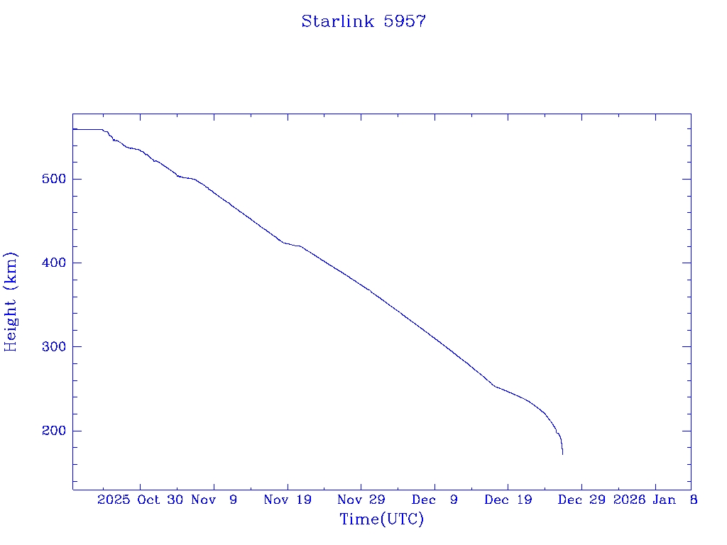 | Starlink 5957 | S55995 | R | 2023 Mar 24 | 2025 Dec 17? | 2025 Dec 26 |  |  |  |