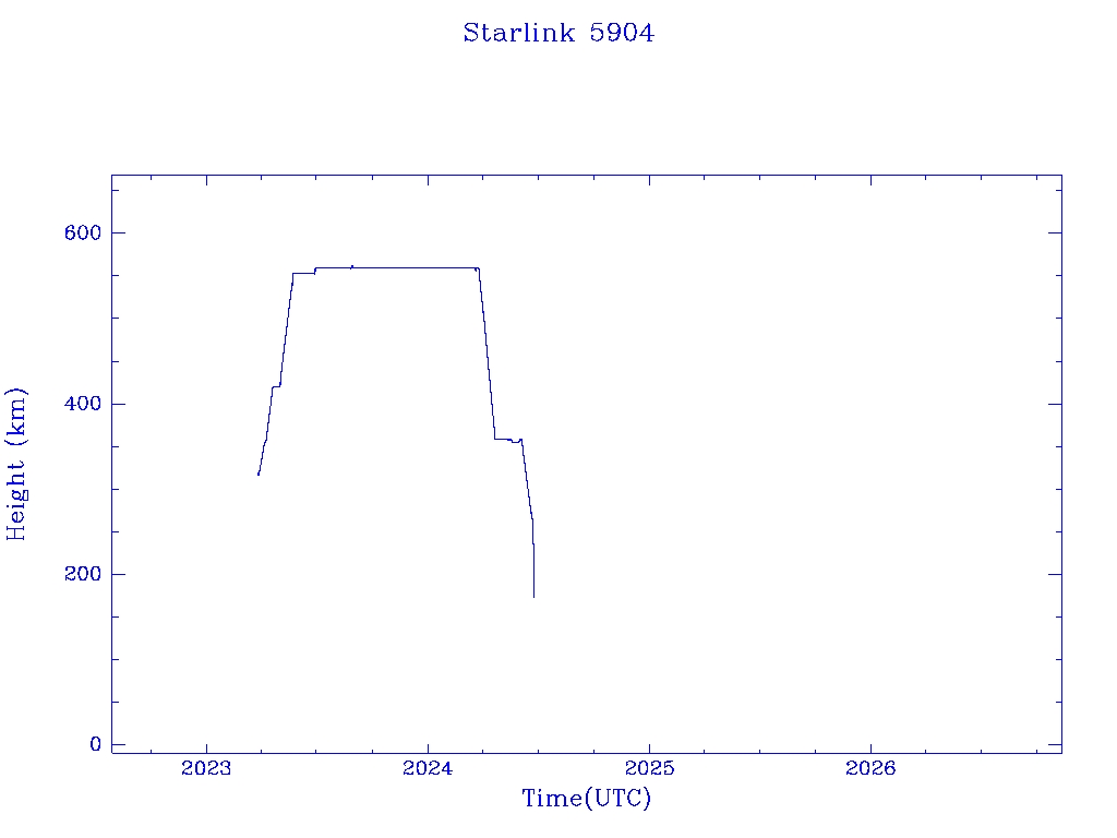 | Starlink 5904 | S55997 | R | 2023 Mar 24 | 2024 Jun 20 | 2024 Jun 23 |  |  |  |