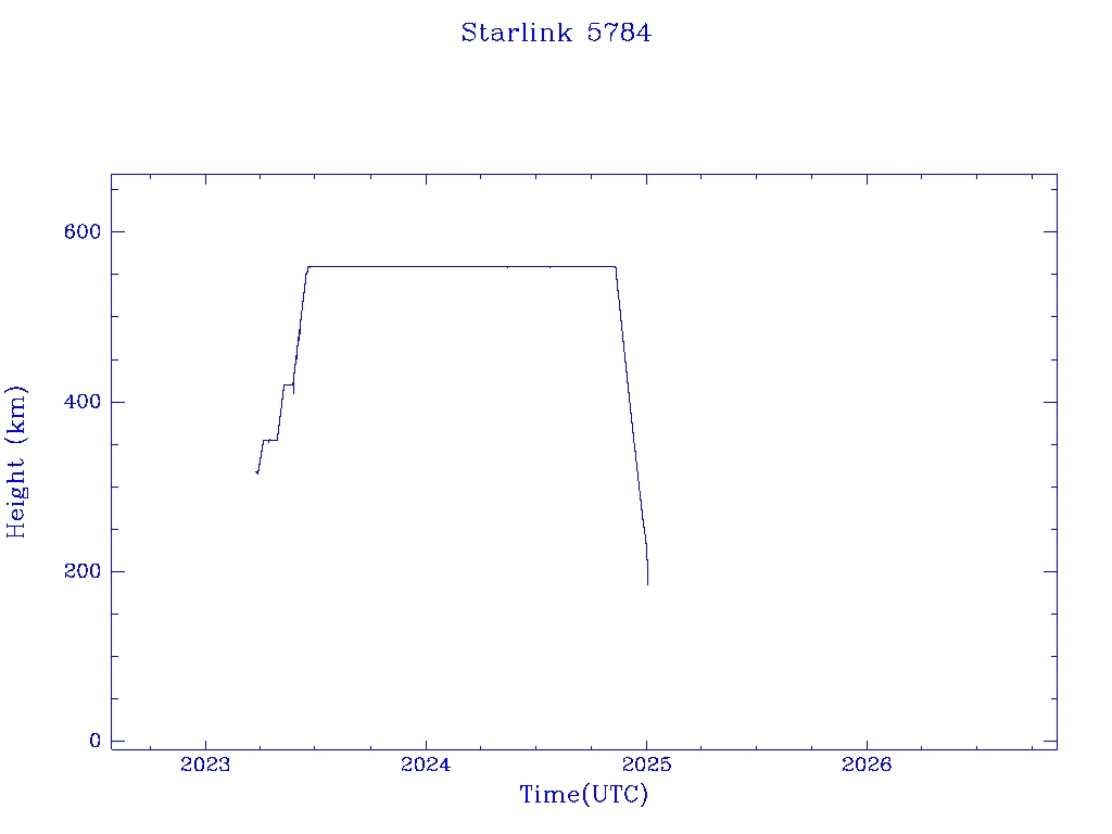 | Starlink 5784 | S56033 | R | 2023 Mar 24 | 2024 Dec 24? | 2025 Jan 2 |  |  |  |