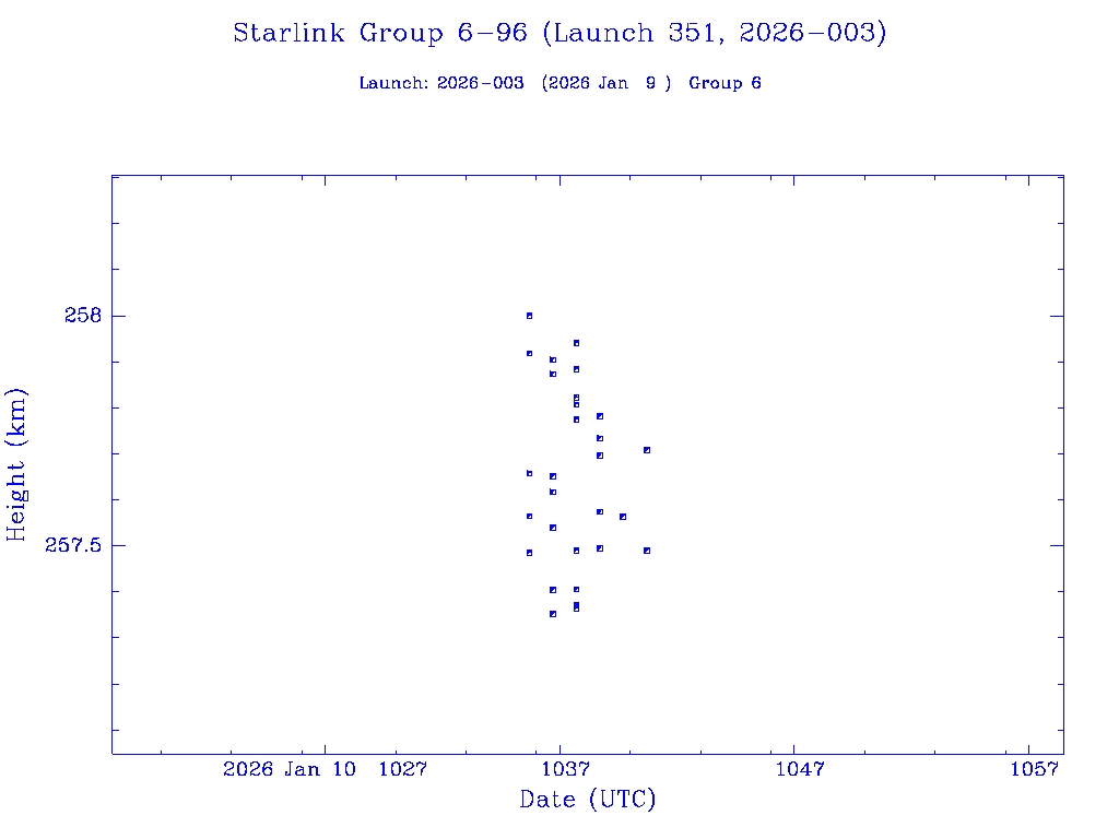 | Starlink Group 6-96 (Launch 351, 2026-003) | 29 | 0 | 0 | 0 | 0 | 0 | 29 | 0 | 0 | 0 | 29 | 0 | 0 | 0 | 0 | 0 | 29 | 0 | 0 |  |  |  |