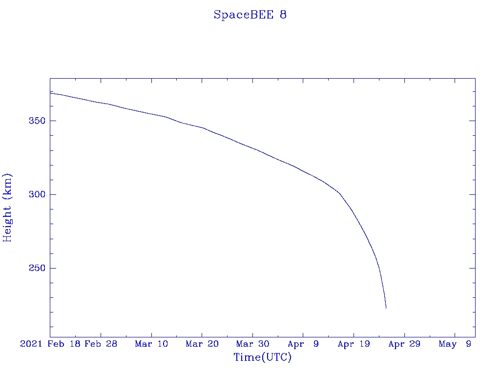 | SpaceBEE 8 | S44371 | 2019 Jun 29 | 2021 Apr 26? | 2021 Apr 26 | ![]() | ![]() | ![]() |