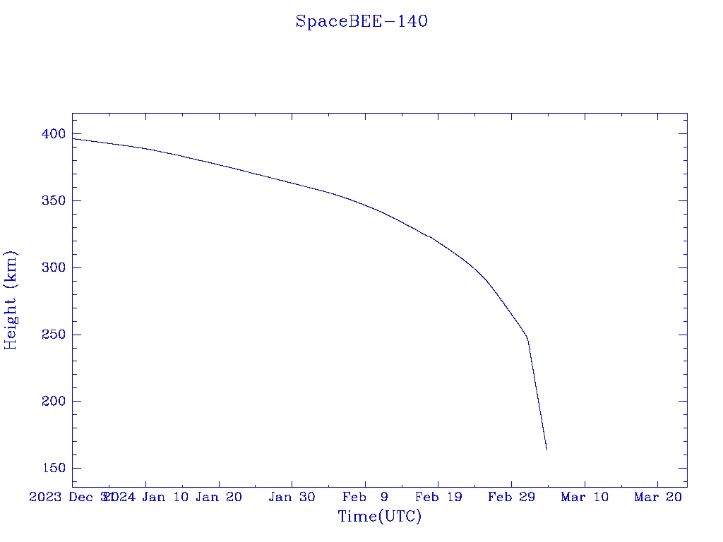 | SpaceBEE-140 | S52399 | | 2022 May 2 | 2024 Feb? | 2024 Mar 7 |  |  |  |