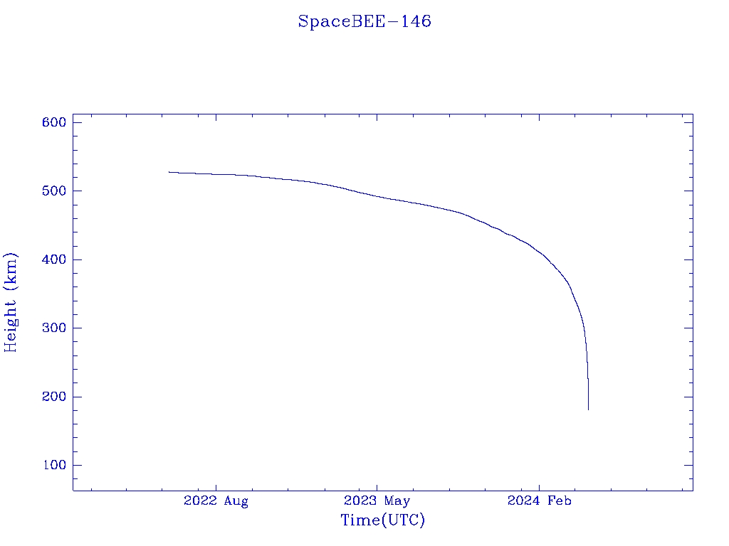 | SpaceBEE-146 | S52412 | | 2022 May 2 | 2024 Mar? | 2024 Apr 23 |  |  |  |