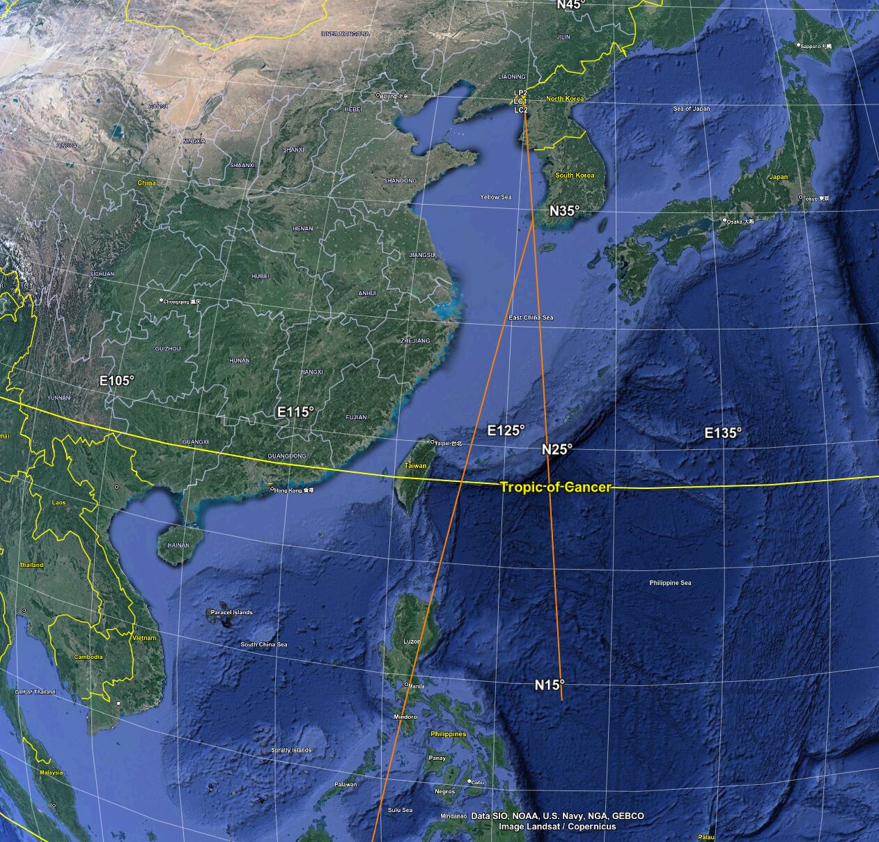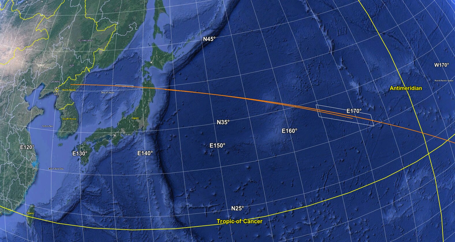 Eastward launch from Sohae over Akita/Iwate region of Japan and over the Pacific.