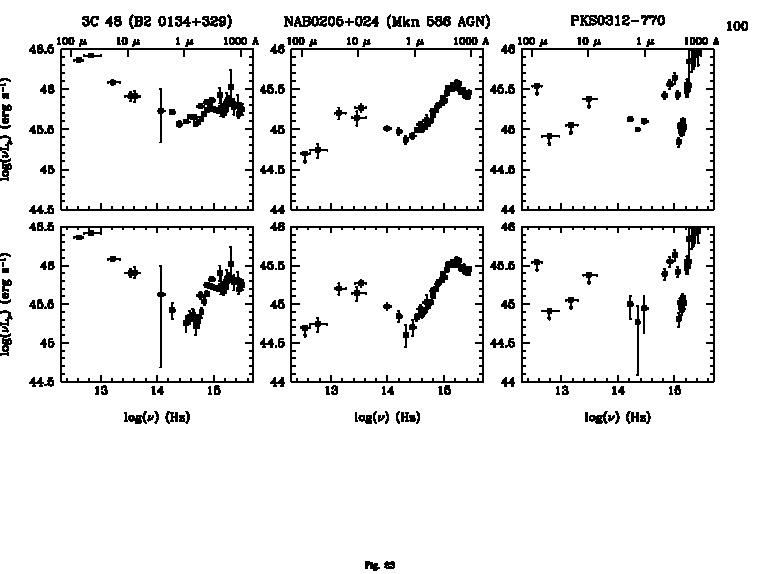 Closeups of 0.1-100 micron region showing SEDs both pre and post host galaxy subtraction where appropriate.