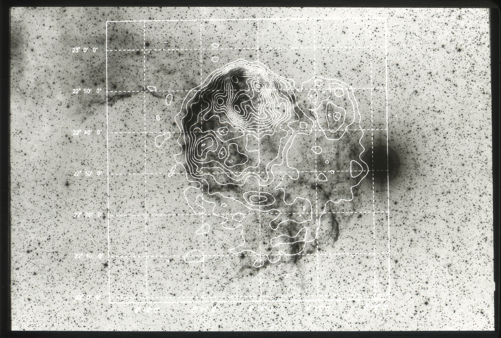 E/1031 Isointensity X-ray contours from the IPC observation superimposed on the POSS print. |