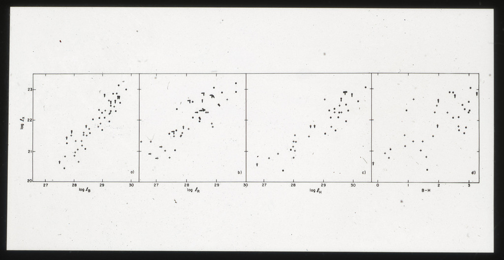 E/994 LVS spiral galaxies. Subsamples l_x, l_B, l_R, l_H correlations. |