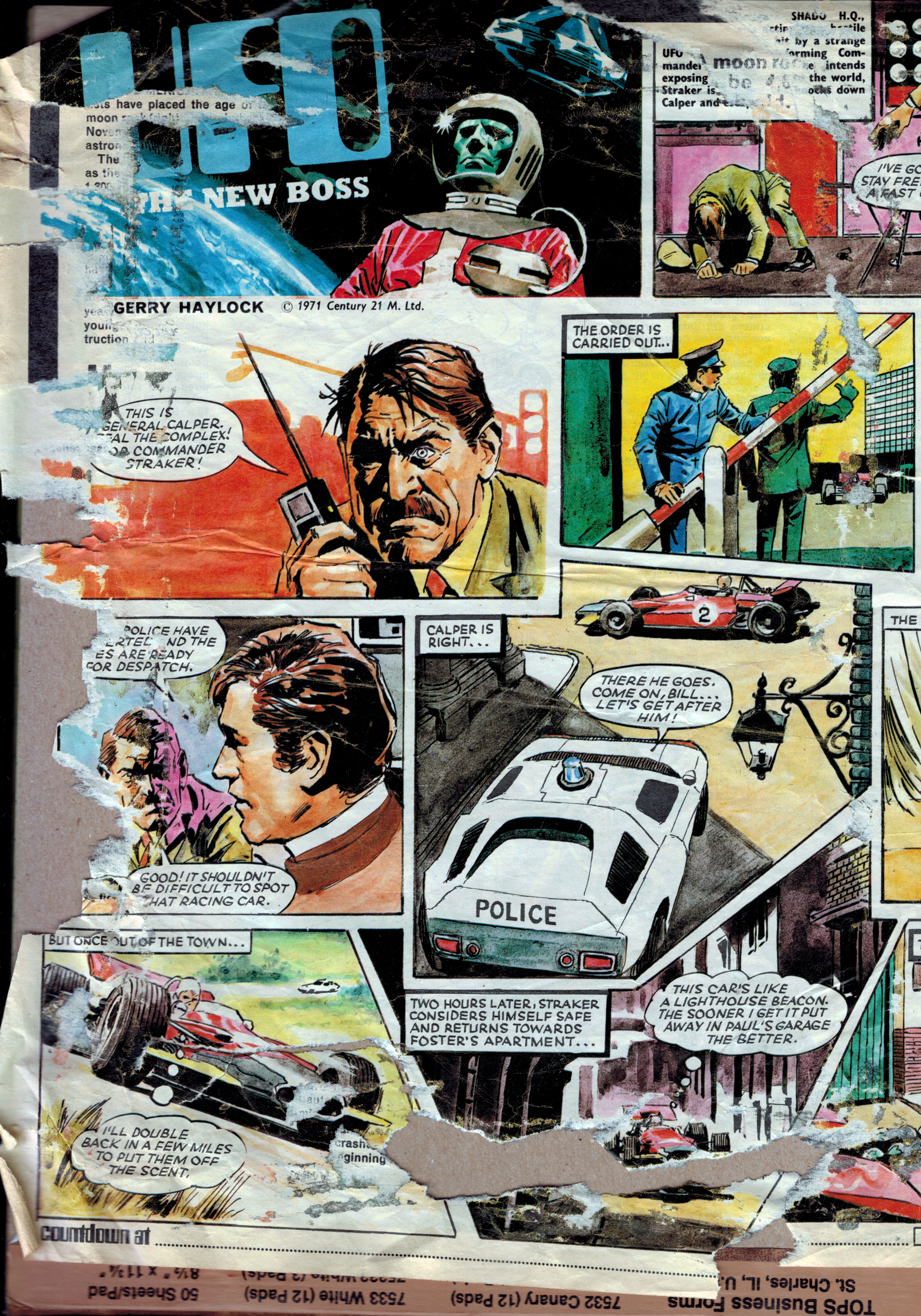 The comics carried strips based on popular science-fiction television series, especially the Gerry Anderson shows (Fireball XL5, Stingray, Thunderbirds, UFO) but also Dr Who and others. (A single British comics issue would contain short, typically 2-page, episodes of many unrelated serials, in contrast to a US `comic book' containing a single storyline.