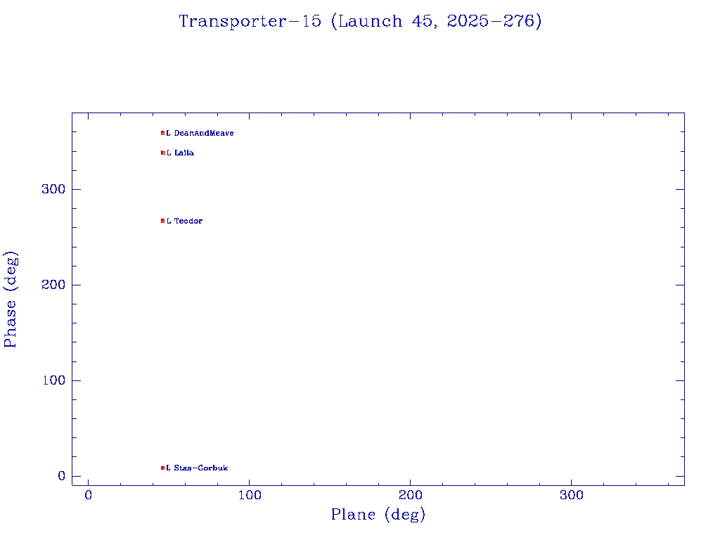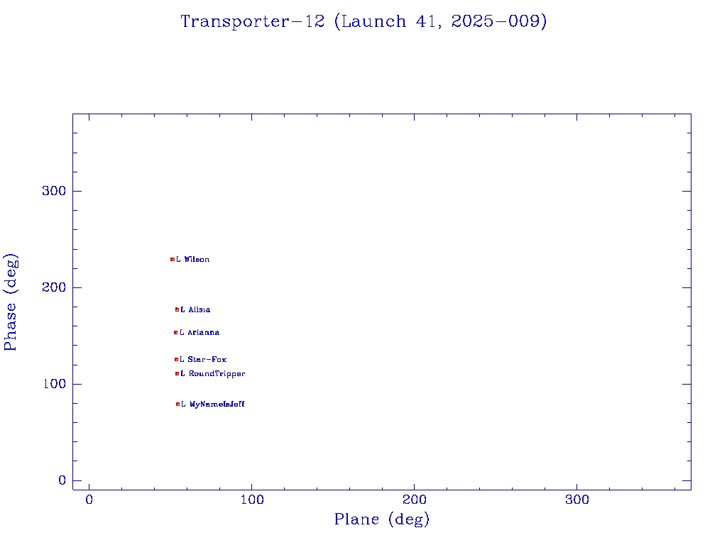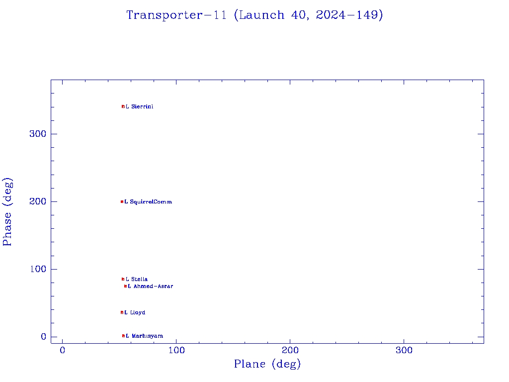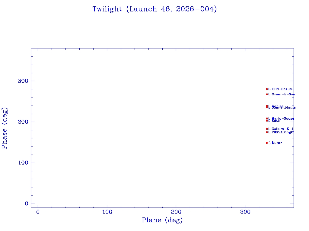 Click on mission name for details of individual satellites. Phase/Plane plots only include satellites in`operational orbit' (status = O)