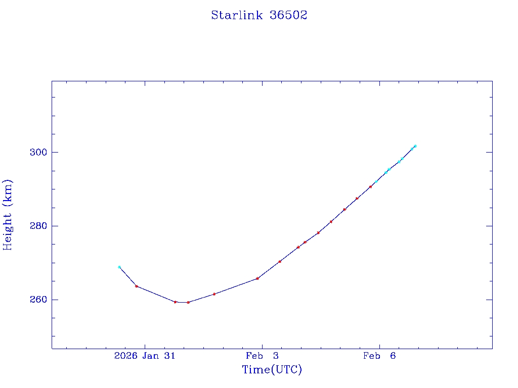 | Starlink 36502 | S67627 | A | 2026 Jan 30 | * | - |  |  |  |