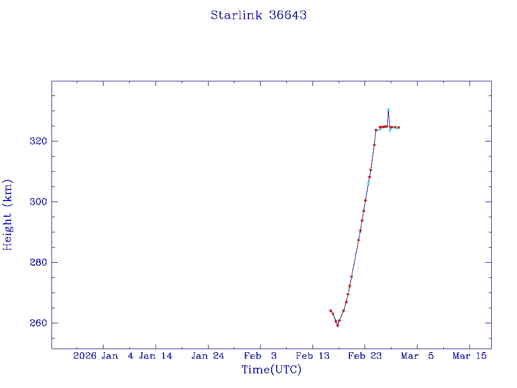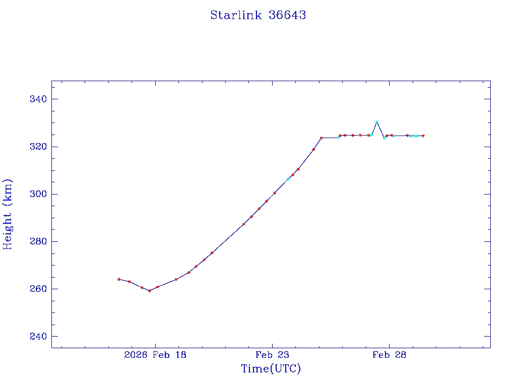 | Starlink 36643 | S67822 | A | 2026 Feb 16 | * | - |  |  |  |