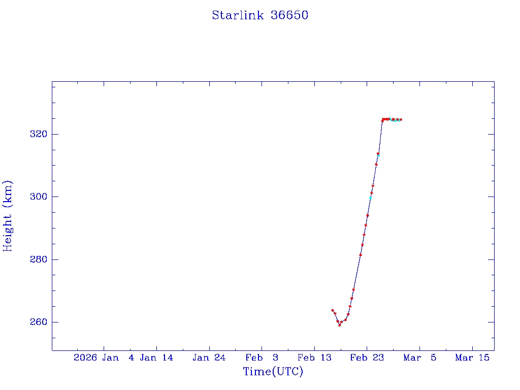 | Starlink 36650 | S67836 | A | 2026 Feb 16 | * | - |  |  |  |