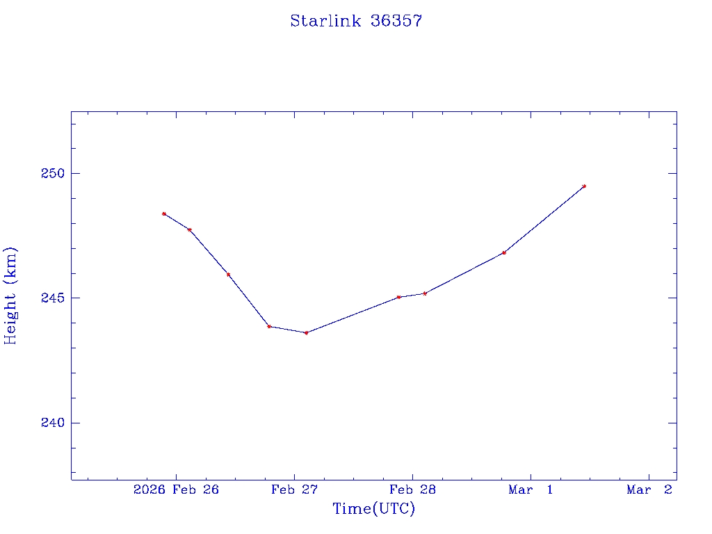 | Starlink 36357 | S67963 | D | 2026 Feb 25 | * | - |  |  |  |
