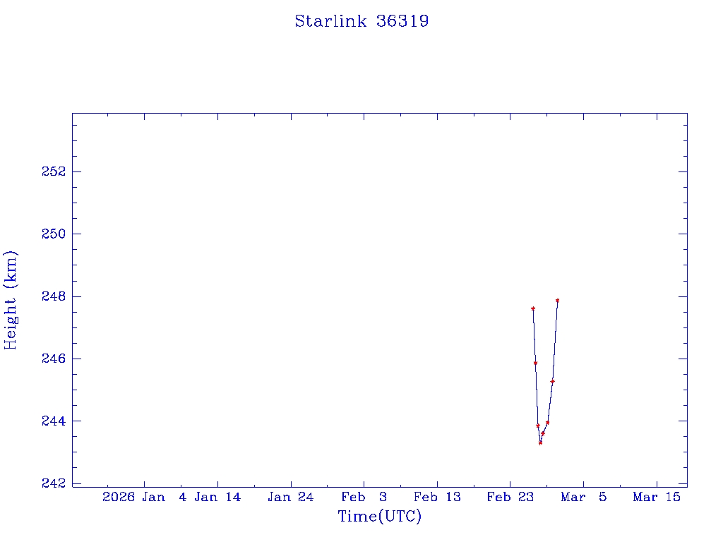 | Starlink 36319 | S67970 | D | 2026 Feb 25 | * | - |  |  |  |