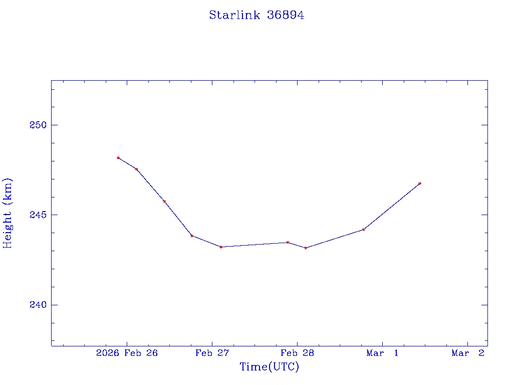 | Starlink 36894 | S67972 | D | 2026 Feb 25 | * | - |  |  |  |