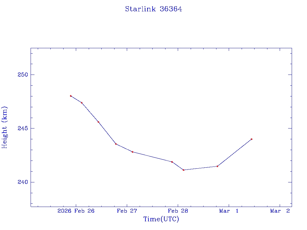| Starlink 36364 | S67978 | D | 2026 Feb 25 | * | - |  |  |  |
