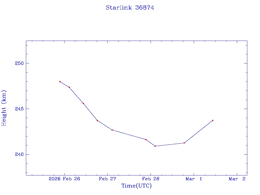 | Starlink 36874 | S67981 | D | 2026 Feb 25 | * | - |  |  |  |